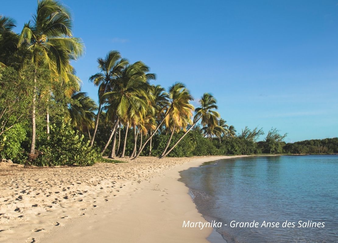 Jeśli szukasz idealnej karaibskiej plaży zatrzymaj się na kotwicowisku Grande Anse des Salines na południowym krańcu Martyniki. Znajdziesz tutaj długą, piaszczystą plażę z licznymi palmami opadającymi w kierunku morza. Dobre trzymanie kotwicy w piaszczystym dnie. Trochę uciążliwa fala. Dodatkową atrakcją jest słone jezioro w bliskim sąsiedztwie plaży, gdzie można wybrać się na spacer.