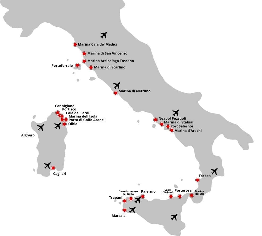 W ostatnich latach oferta czarterowa we Włoszech mocno się poprawiła. Przybyło nowych baz, rozbudowała się flota czarterowa – ze szczególnym naciskiem na katamarany. Stan techniczny jachtów nie ustępuje temu jaki spotykamy w Grecji czy Chorwacji. Załogi wracające z rejsów we Włoszech podkreślają wysoką jakość obsługi klienta. Dominują cztery destynacje: północna Sardynia, Sycylia – Wyspy Liparyjskie, okolice Neapolu, oraz Toskania.