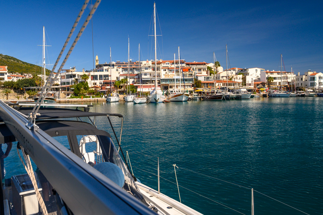 Możesz zacumować w porcie miejskim, ale musisz mieć trochę szczęścia. Port jest niewielki, dużo miejsca zajmują gulety i mniejsze statki turystyczne. Dla jachtów żaglowych jest dosłownie kilka miejsc. A ruch jest spory, bo wiele jachtów odprawia się w Datca, płynąc do/z Grecji. Aby uniknąć skrzyżowania kotwic (szczególnie z guletami), warto wyrzucić max 15-20 metrów łańcucha. Podchodząc rufą do nabrzeża, dobrze zostawić sobie trochę zapasu, gdyż przy samym nabrzeżu znajdują się skały, blisko linii wodnej. My zrezygnowaliśmy z trapu i wspinaliśmy się po pontonie.