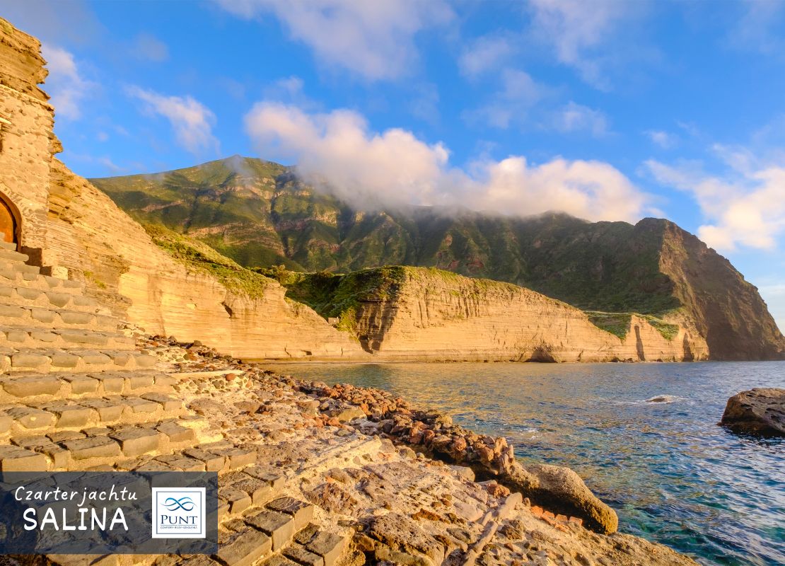 - Gdy wieje z zachodu, warto zatrzymać się w Punta Lingua na południowo-wschodnim krańcu Saliny. Najlepsze kotwicowisko znajduje się naprzeciwko plaży otoczonej bojami. Dno skaliste, nieregularne, porośnięte trawą posidonia. Warto wybrać się na spacer do latarni morskiej oraz odwiedzić kultowy lokal Alfredo, w którym serwowane są m.in. słynne pane cunzato – kanapki na bazie wiejskiego chleba z dodatkami od pizzy.