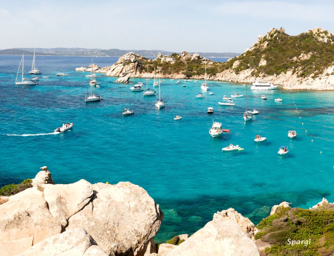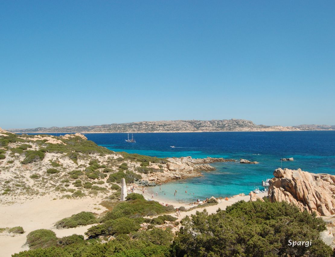Wyspa Spargi, należąca do Parku Narodowego La Maddalena, jest niezamieszkała i słabo dostępna za sprawą wystających z morza ostrych skał. Ma kilka pięknych zatok, z których najbardziej znana jest Cala Corsara, czyli Zatoka Korsarzy. To tutaj znaleziono fragmenty rzymskiego statku handlowego, które można teraz oglądać w muzeum N. Labroglia w La Maddalena. W sezonie piękna i piaszczysta plaża oraz wystające z morza skały przyciągają liczne łodzie wycieczkowe z Palau (Sardynia). To bardzo duża zatoka z cudowną, turkusową wodą o głębokości od 3 do 10 m.