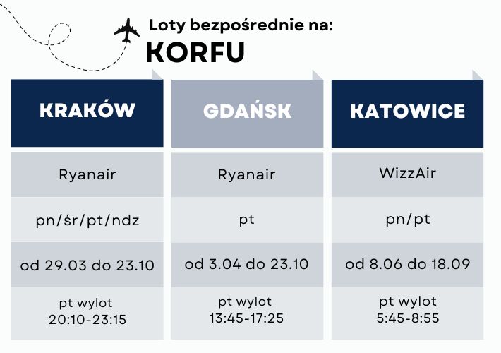 Sporo bezpośrednich połączeń na Korfu oferuje Ryanair, ale tylko z Poznania i Wrocławia w soboty.