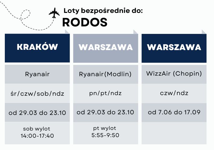 W sezonie 2026 możemy jeszcze polecieć na Rodos WizzAirem z Warszawy (Chopin), ale tylko w czwartki i niedziele.