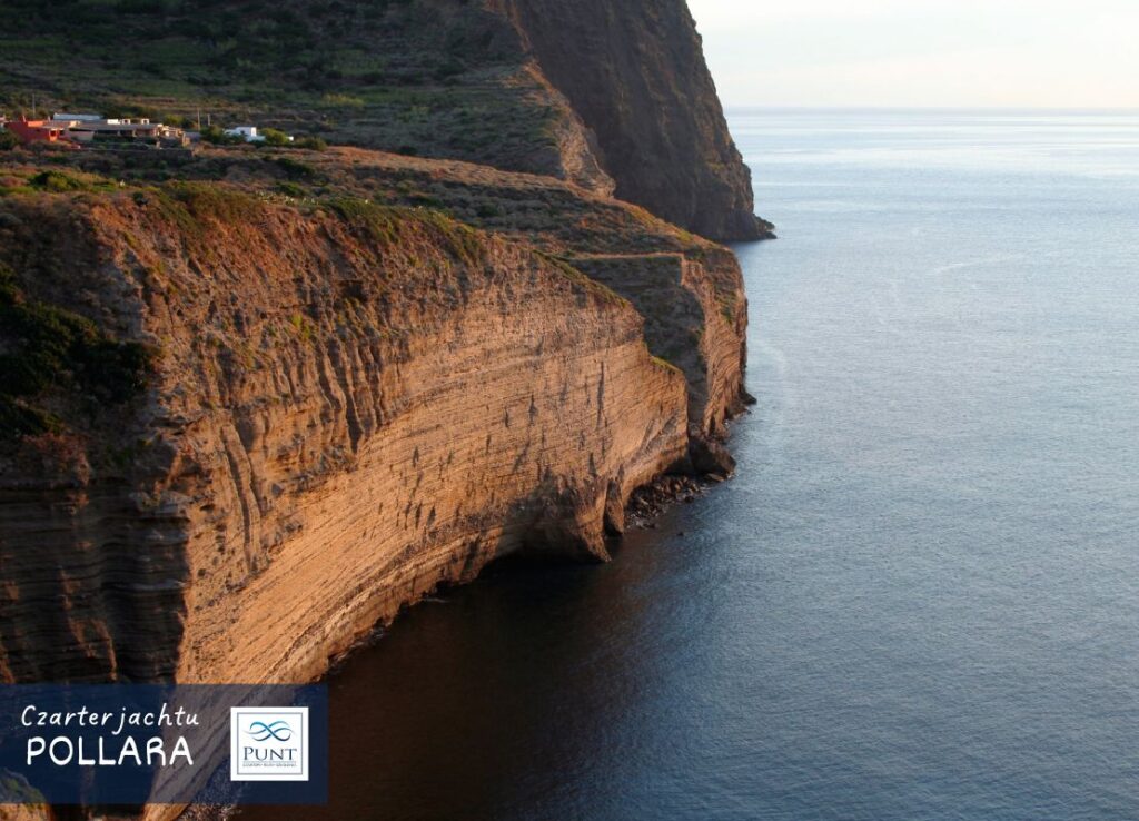 Zatoka Pollara leży na północno-zachodnim wybrzeżu wyspy Salina i jest to miejsce, które robi wrażenie zarówno od strony morza, jak i lądu. Mamy tu gigantyczny, stromy klif, którego skały przybierają o zachodzie słońca piękną, ciepłą barwę. Na jego szczycie leży wioska Pollara. W rzeczywistości wioska położona jest w gigantycznym kraterze, którego połowa zapadła się do morza, tworząc strome urwisko. To również tłumaczy, dlaczego zatoka jest stosunkowo płytka i odpowiednia do kotwiczenia.